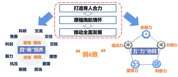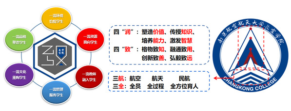 在南航,“长空”是一份荣誉、一种责任,更是一种精神和追求。学院以“长空”命名,凸显我校航空为本、服务三航的办学特色。学院深挖“长空”育人内涵,设计提出“六个一流”的育人定位和“四商”培养、“五力”协同的育人目标,凝练出四“润”四“致”的育人理念,总结出四“有”(有情怀、有担当、有活力、有内涵)五“善”(善于学习、善于思考、善于研究、善于实践、善于创新)的育人追求,形成以“润&致”为核心的学院文化体系。