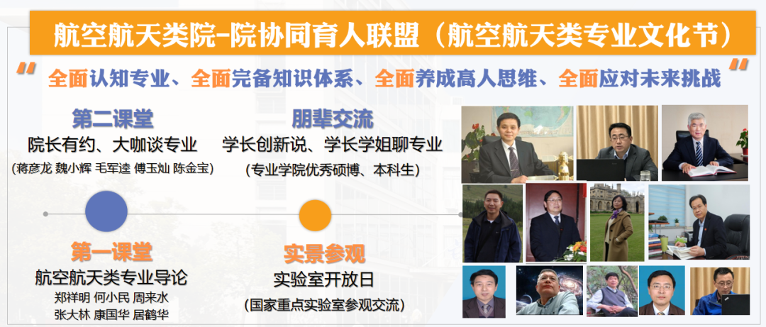 为促进学生全面地认知专业、了解学科、知晓行业,感受航空航天类专业的魅力,贝博艾弗森代言体育官网联合专业学院不断推进“院-院”协同育人,开展航空航天类专业文化节,实施形式多样、类型丰富的专业认知教育,引领学生全面认知专业和热爱学校,全面深化思考和完备知识结构体系,全面学习与养成“高人”思维和生活态度,全面理解时代和应对未来挑战,达到“四个全面”培养要求。