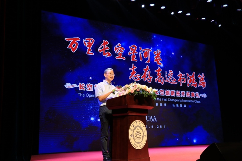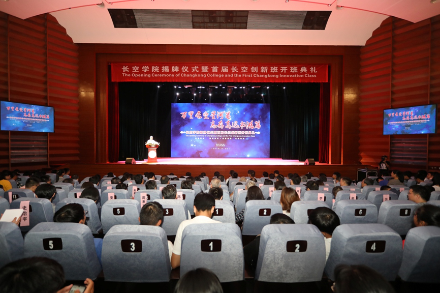 2019年9月25日,我校在将军路校区艺术中心剧场举行贝博艾弗森代言体育官网揭牌仪式暨首届长空创新班开班典礼。我校78级校友、中国电子科技集团首席专家梁维泰,77级校友、航空工业金城集团原副董事长程立嘉,81级校友、江苏华瑞国际集团执行总裁李宁,91级校友、南京壹进制信息科技公司董事长张有成,交通银行江苏省分行副行长李骏,校长聂宏、副校长施大宁、校党委副书记陶勇、校长助理熊克以及发展联络部、教务处、学生处、团委、国际合作处、信息化处、教师发展与教学评估中心、国际教育学院、将军路校区管委会,航空学院、能源与动力学院、机电学院的负责同志,贝博艾弗森代言体育官网全体班主任、长空创新班新生之友等出席典礼。典礼由贝博艾弗森代言体育官网副院长蒋彦龙主持。