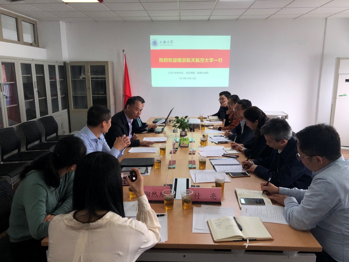 随后,蒋彦龙一行到上海大学社区学院开展调研,与社区学院党委书记邓志瑞、院长尹静波座谈交流,双方就大类招生、通识教育改革、学生培养模式改革和学生事务管理等方面作了进一步的交流。