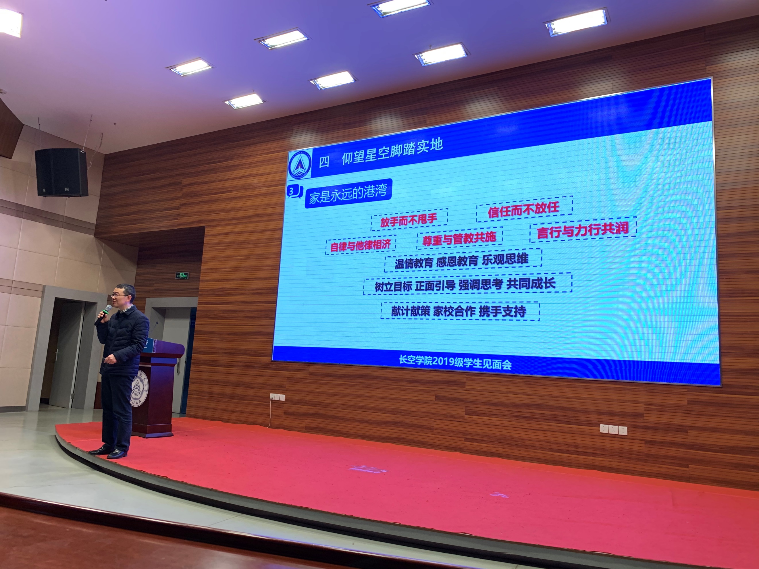 蒋彦龙阐释了贝博艾弗森代言体育官网“六个一流”的育人定位和“四商培养”的育人特色,并解读了贝博艾弗森代言体育官网的院徽内涵,简单的图形包含着我院“三航三全”的育人特色和“四润四致”的育人理念,同时包含着对浩瀚宇宙的追求。蒋彦龙围绕我院协同育人机制,回顾了三个月来学院开展的丰富多彩的协同育人活动,其中“一杯咖啡的故事”系列师生交流活动已经有37位教师、超过600人次参与;班主任累积参与班级建设活动60余次。蒋院长希望在这样丰富、多样、有效的师生互动机制下培养出的长空学子都能像能级跃迁一样,积累知识、运用知识、启迪智慧、丰富内涵、达成质变。