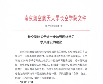 为强化线上学习成效,解决线上学习中的问题,贝博艾弗森代言体育官网制定了《贝博艾弗森代言体育官网关于进一步加强线上学习学风建设的建议》,文中提出了“自律、自主、自助”三项行动。各班围绕“三自”行动召开了主题班会,学习文件精神,制定行动方案。贝博艾弗森代言体育官网全体领导、老师分别参与线上班会,并作点评。