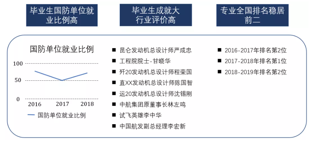并且,本专业毕业生的行业岗位契合度高,事业发展能力强,成为承载我国航空发动机行业的主力军,在科技界、企业界、政界和军界大放异彩,成长为各行业中的精英人才。他们在我国的国防建设、国民经济建设中发挥了巨大作用。