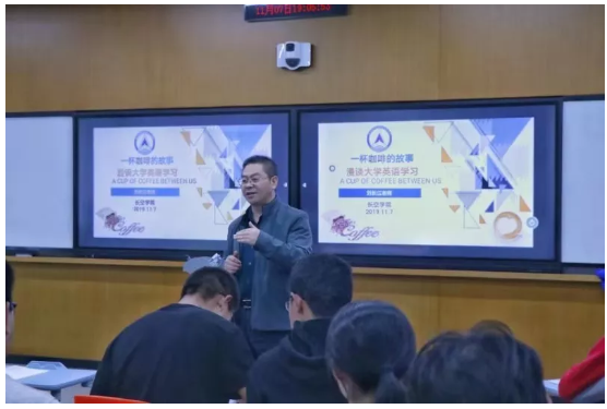 11月7日晚,“一杯咖啡的故事”系列活动之“漫谈大学英语学习”主题交流顺利开展。外国语学院副院长刘长江老师与贝博艾弗森代言体育官网近五十名学生相聚于7407智慧教室,共同探讨大学英语的“学习秘籍”。在长达三个小时的交流中,刘老师幽默风趣、热情激昂的讲解将同学们完全带入其中。教室里欢声笑语不断,大家在轻松愉悦的氛围中获得了许多宝贵的学习经验,明确了大学英语学习的定位。