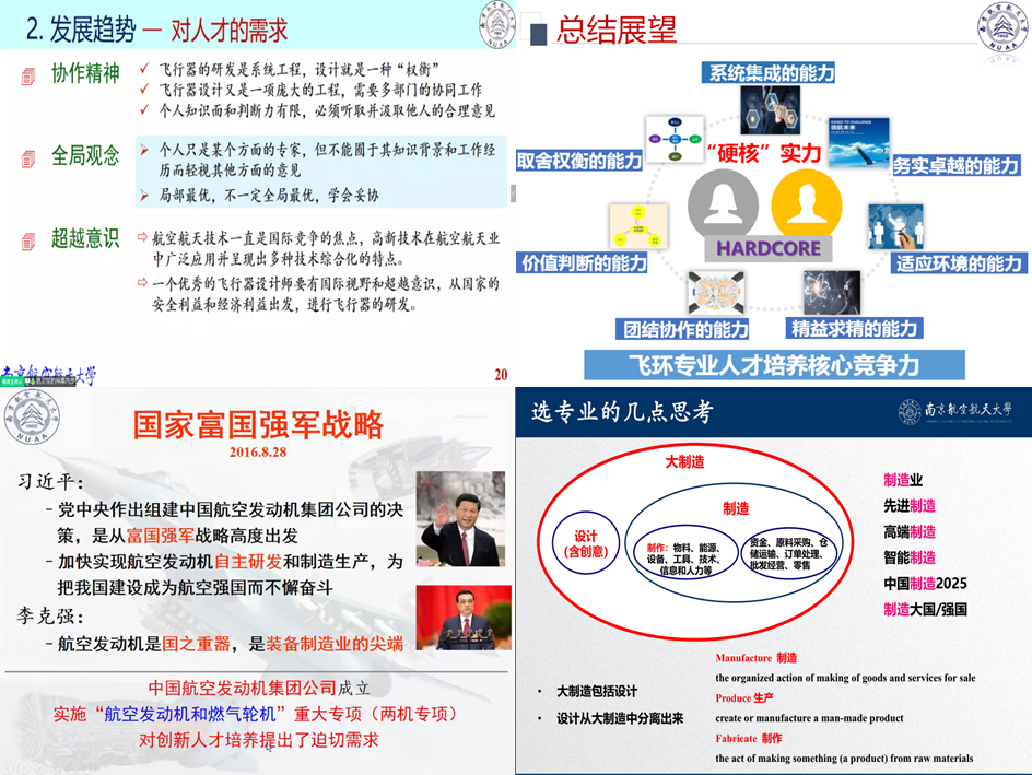 此次专业节的举办是我校航空航天大类培养模式改革中的一次全新尝试,充分汇聚了校内外优质资源,开创了协同育人的新局面,体现了航空航天大类培养模式改革的优势。航空航天类专业大类招生、大类培养要在人才培养过程中实现学科交叉,让不同的专业方向实现自然的融合、渗透。在三全育人格局下,航空航天大类人才培养改革的步伐将愈加坚定。