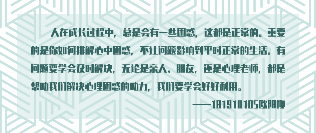 第一个呢,我们做心理工作的需要一些个人特质,就是有较强的爱心和耐心,对于帮助学生摆脱困境我们会有成就感,帮助来访者的时候我们会很快乐。另一方面我们会有一个专业群,我们业内搞心理的会互相调解,有解决不了的问题时会一起解决。可能你们听说过一些事情,比如某电台主播自杀了,你们会觉得电台主播跟我们有点像,也是一直在倾听别人的烦恼,但这些职业毕竟没有专业学习过心理学,当他们接触到的信息中有太多类似于家庭不幸、受过创伤等负面情绪时,他们可能就会受到很大影响。很多人也会问我们心理老师会不会和家人吵架,这个是肯定的,只是我们会积极地去处理问题,不激化矛盾,及时地化解矛盾,不会让矛盾去困扰我们自己的生活。