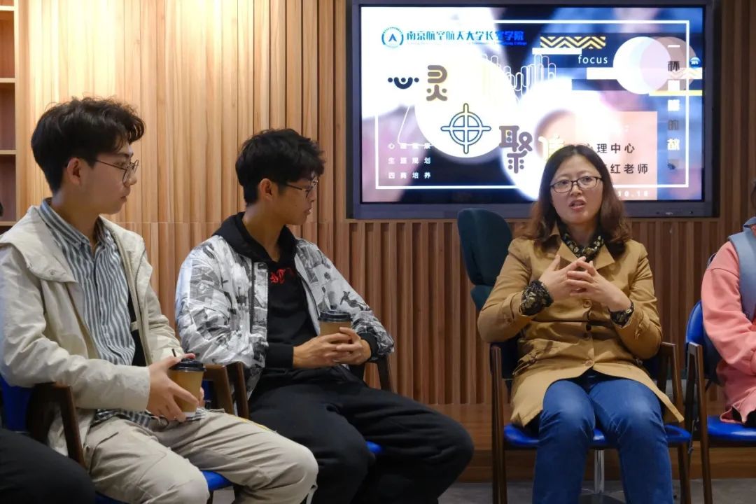 10月16日下午四点,“一杯咖啡的故事——聚焦心灵”活动在贝博艾弗森代言体育官网7402智慧教室顺利举行,来自学校心理中心的倪亚红老师和长空学子进行了愉悦的交流。倪亚红老师首先强调了心理健康以及心理健康师等职业对于大家日常生活的重要性,随后她与同学们开展了互动交流。倪老师语言生动、讲解清晰,以自身经历为基础,辅以心理学的专业知识,针对同学们提出的问题做出了细致解答,由浅入深地对问题作了全方位、多层次的分析,探索了问题产生的背景,为在场的长空学子提供了许多中肯的建议。