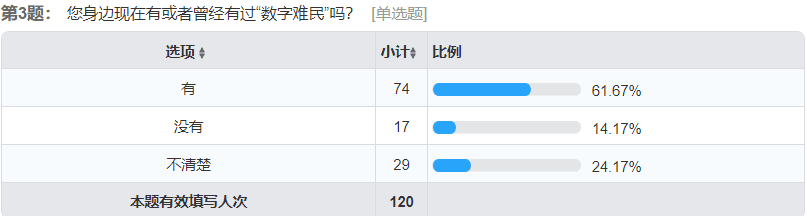 “数字脱贫”实践团队发布了一份线上问卷,了解大众对于数字难民的关注程度,探得数字难民在现代社会中生活的一角,跟着他们一起来分析这份问卷的调查结果,你又会怎么看“数字难民”?
