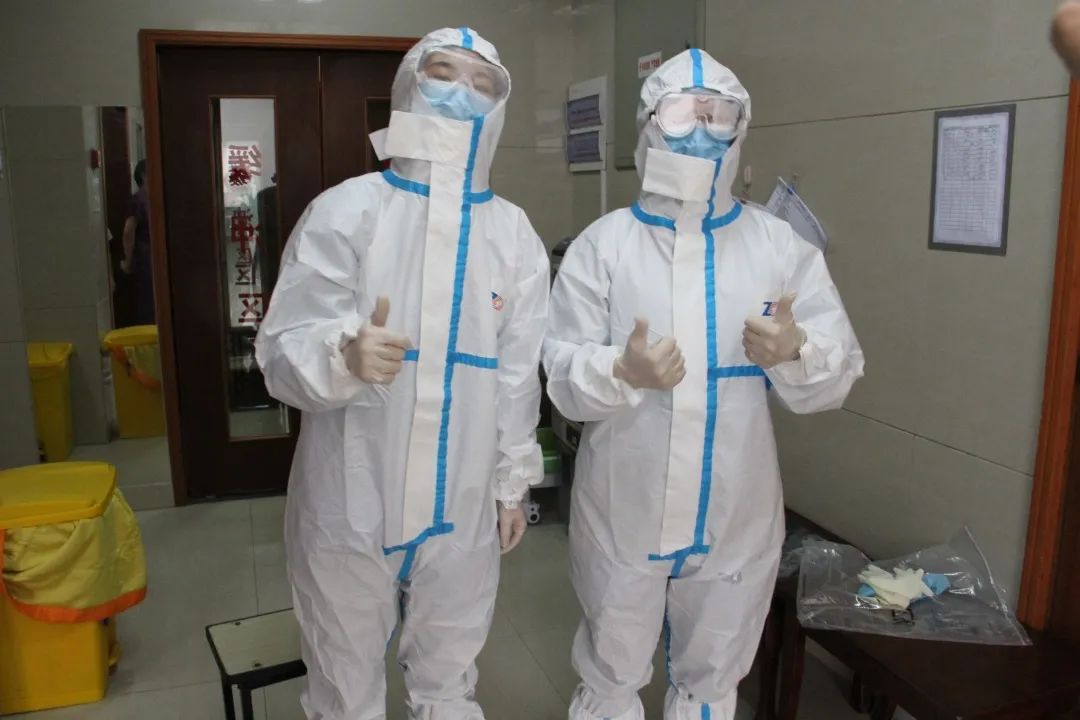 仅一次的穿脱我们就已经大汗淋漓,而医护人员们则要穿着密不透风的防护服连续工作六个小时,这种强度是我们难以想象的,看着他们的笑颜,我们内心的敬意油然而生。