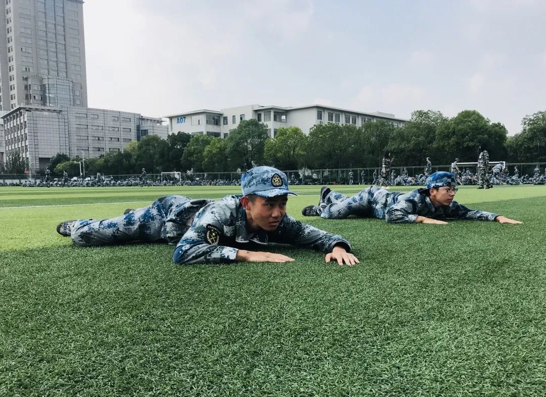 雨后的操场被水珠、泥土覆盖,坚硬的草皮磨破手肘,但一遍遍练习过后,他们趴下的动作一次次标准,前行的速度一次次加快,意志在汗水的浸润下愈发坚定。他们的眼中闪耀出光芒,身体虽匍匐在地精神却昂扬挺立。