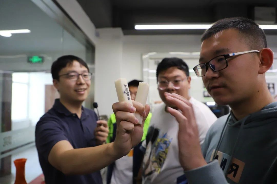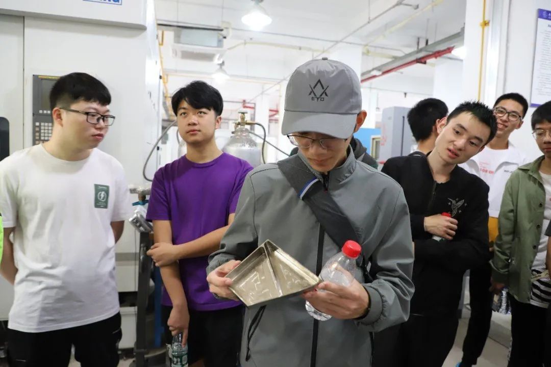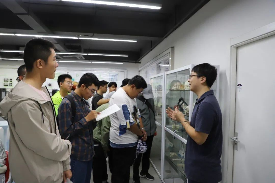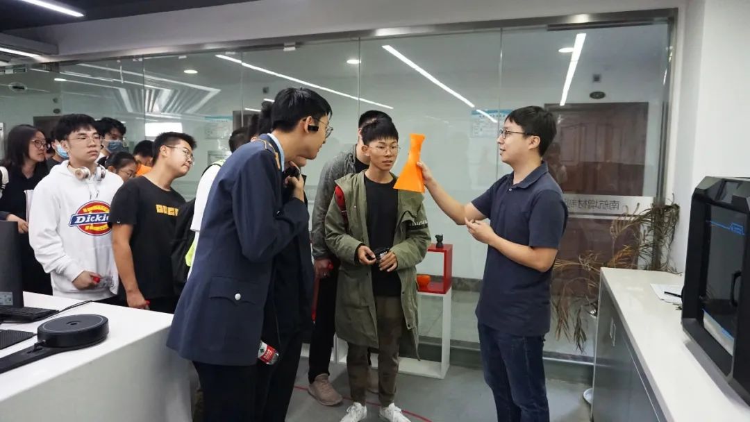 讲解员带领同学们依次参观了打印金属材料、结构-电路一体化、光固化打印等各个类型的3D打印机,其中着重介绍了实验室自研的一款适用于基础试验的SLM机床。此外,讲解员还展示了3D打印技术在精准医疗、航空航天技术、教育与艺术等方面的应用成果。