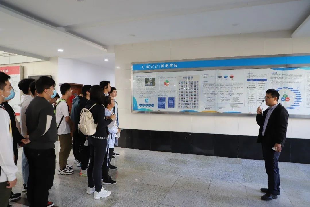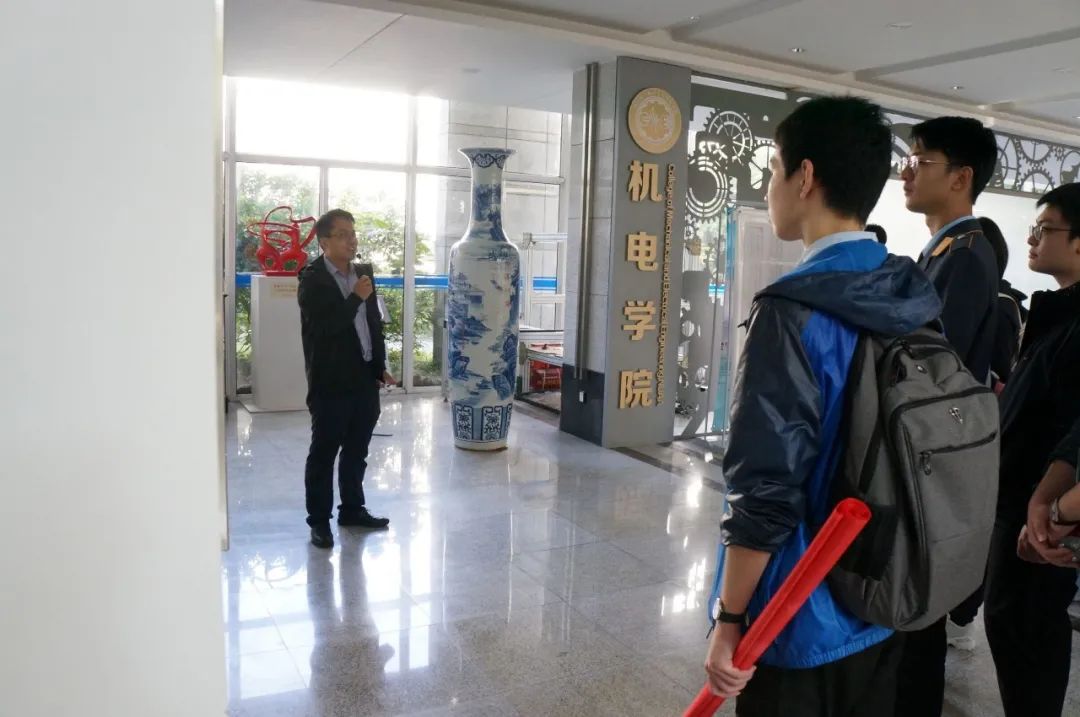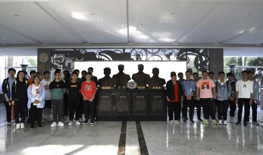 机电学院大厅陈列着张幼桢、云铎、程宝蕖、余承业这四位学院开拓者的雕塑,同学们环绕着雕塑,聆听机电学院王长瑞老师的讲解。王老师简要介绍了机电学院的办学历史、育人成果、教师团队等多方面特色,向同学们展示了机电学院独有的精神面貌。王老师对长空学子来到机电学院参观实验室表示欢迎,对专业分流后部分同学来到飞制专业继续学习表示期待。