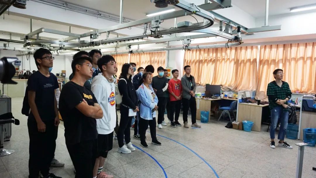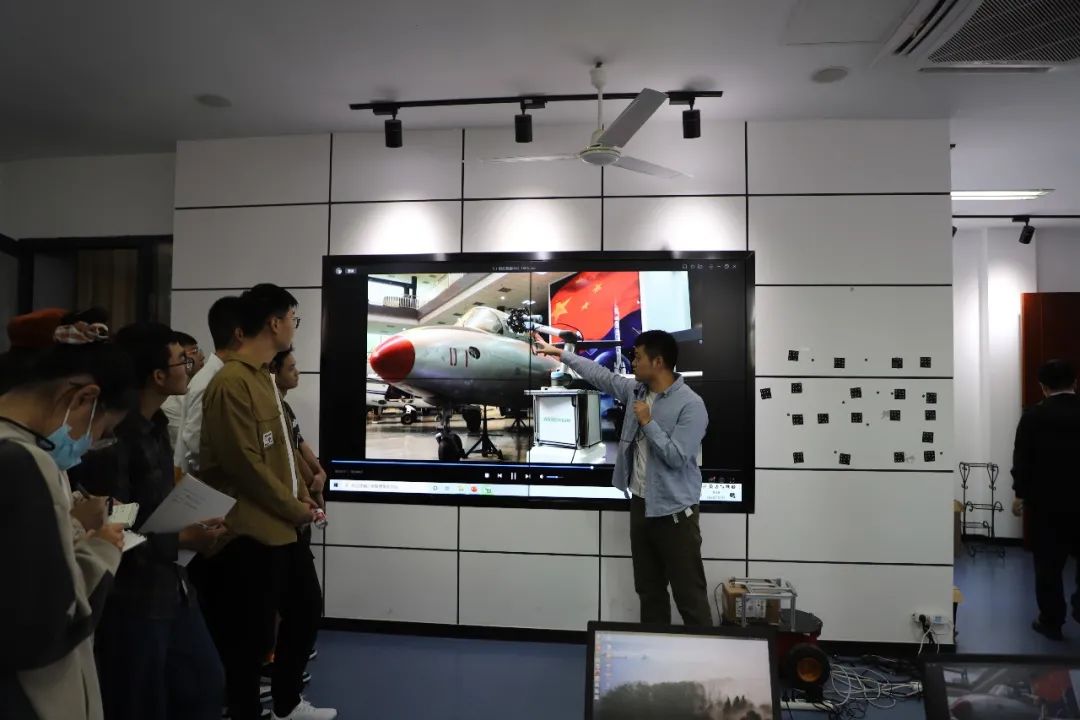 讲解员首先介绍了机器人智能装配,随后针对工业机器人加工颤振结构、机器人刚度强化技术、机器人精度补偿技术三个方向具体介绍了这一技术的发展并带领同学们参观了实验设备。智能装配实验室另一个研究方向是数字孪生与虚拟仿真技术,讲解员以C919为例向同学们讲解了大型飞机结构的智能化检测,同时展示了通过视觉技术、轨道计划和误差分析进行的大型结构装配过程,借助实验室开发的项目,许多同学体验了飞机装配模拟以及增强现实技术。