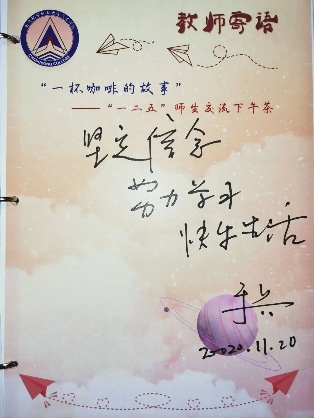 今天,刘老师的精彩发言给我留下了深刻印象,刘老师和蔼的面容也让我倍感亲切。同为南航人,刘老师在专业课之余发展兴趣爱好,最终把它变成了为之奋斗一生的事业。在刘老师的人生经验分享中,我认识到了兴趣,阅读以及选择对人生的重要性。
