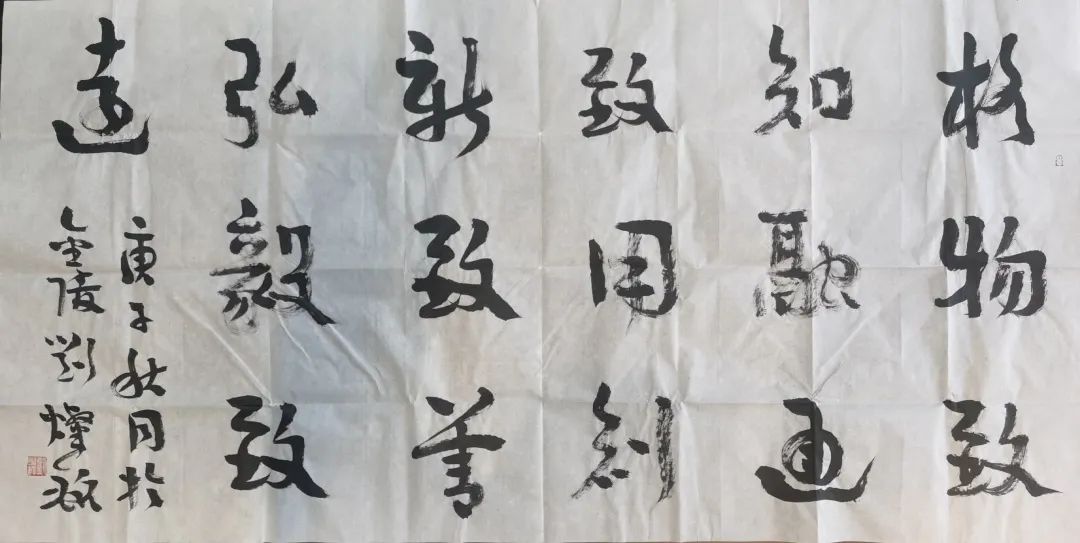 以书法开启话题,刘灿铭老师最后仍然回归书法中,与同学们分享了他的创作感受。首先他谈到了创新能力,在书法界中“有中生有”、“重新排列”也是一种创新,哪怕有一点点新的东西也可以成为创新。故而刘老师表示创新不仅包括大的方面,也存在于生活中的方方面面,“别人没有的你有了,这就是创新”,他鼓励每一位同学都要培养创新能力。刘老师谈及其对于书法的认识,他认为书法不应该被看作很困难的事情,而人们往往把书法太概念化,想象的太过严肃,其实每个人都可以尝试将其作为爱好来培养,而想要达到一定的高度是需要技巧的,例如点线的组合其实学问很大,这也正是书法区别于其他艺术的地方。刘老师表示“难度塑造了许多事情”,他鼓励同学们要从“难事”中发掘出趣味。“灵动也是趣味”,刘老师介绍所谓书法的味道,古人写字古形翩翩,灵动富有趣味,相较而言,工工整整则略微黯淡。他表示艺术需要情景,需要与人交流,这就凸显了人的作用,人赋予书法的特征。