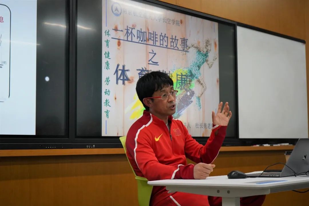 12月10日中午,我校体育部副主任、体育教育训练学博士杜长亮教授作客贝博艾弗森代言体育官网“一杯咖啡的故事”,与长空学子围绕“大学生运动与健康”进行了一次愉快的交流,杜老师幽默的话语引得在场学生捧腹,强健帅气的身姿也令同学们羡慕不已。杜老师从体育思想、体育文化及科学锻炼三个方面与同学们分享了自己的观点。