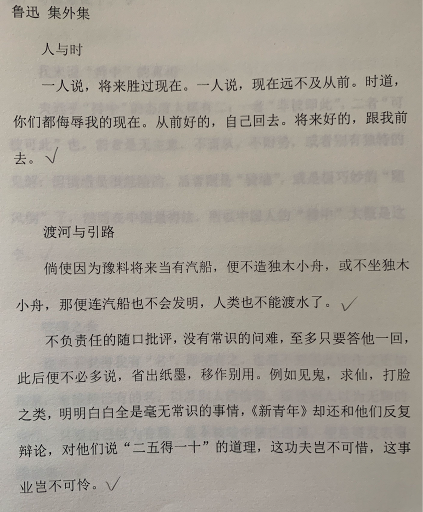 鲁迅先生说:“我惭愧我的少年之作,却并不后悔,甚而至于还有些爱,这真好像是‘乳犊不怕虎’,乱攻一通,虽然无谋,但自有天真存在”。无论处在哪个年龄阶段,鲁迅先生对社会与人生的冷峻刻画和对国民性的深刻揭示和解读都是一以贯之的,同样不变的还有他对正义的热情与渴望。他敢于面对现实的残酷,同时也使我更加深刻地认识到,当现实的残酷被神秘主义的命运无常观包裹起来后,人们只是从意志自由退缩为一种心灵的自我,于是所谓的小幸福,就和不敢正视人生的怯懦没有分别。