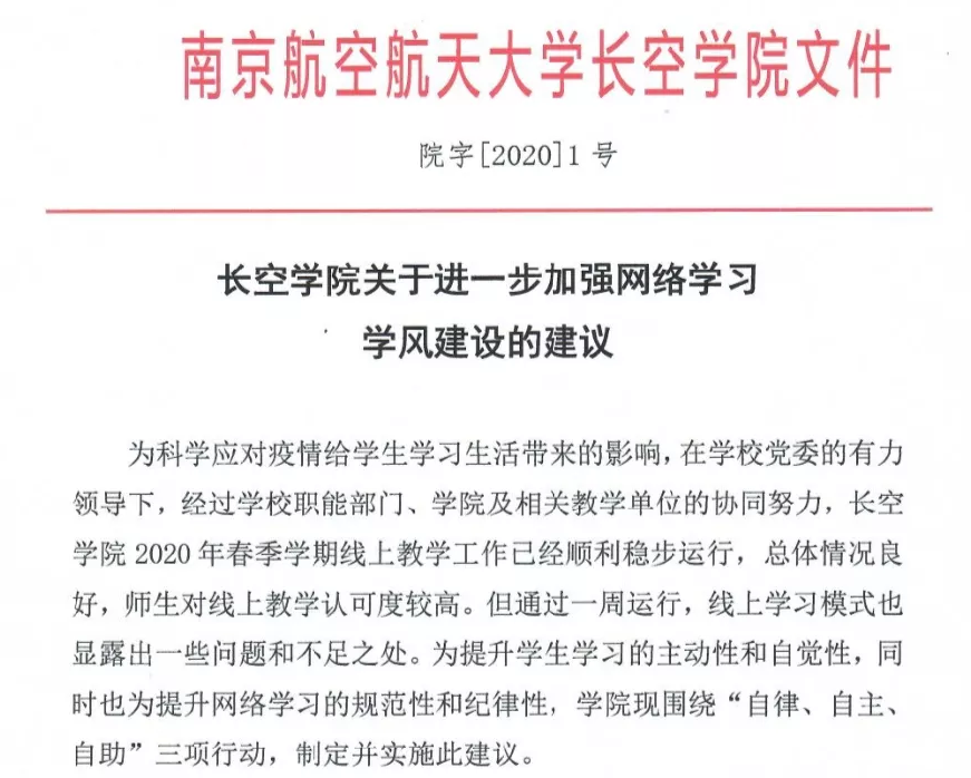 为加强线上学风建设,丰富线上学习形式,巩固线上育人成果,我院在线上教学启动后,针对线上学习中暴露的问题,迅速回应,主动出击,围绕“自律、自主、自助”三项行动制定了《贝博艾弗森代言体育官网关于进一步加强线上学习学风建设的建议》。建议下发以来,学院分层次分阶段围绕维护网络课堂秩序、加强网络学习交流、促进班内互助帮扶等方面开展了一系列活动。