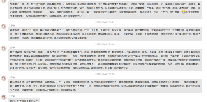 每个学习小组中都有一两位“学霸”、“大佬”,除了带领组员开展日常问题讨论外,他们也毫不吝啬的分享自己的学习经验,这无疑成为了学习小组进步最好的加速器。