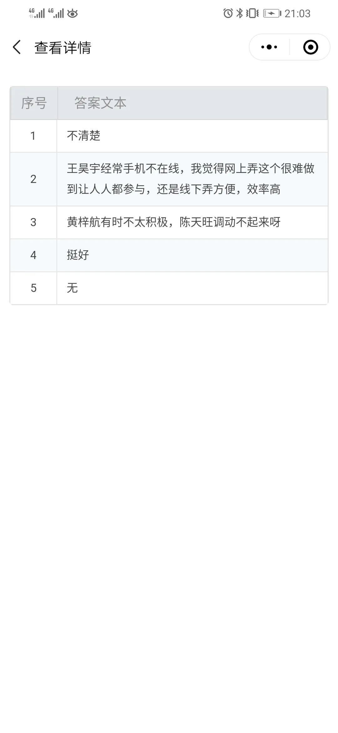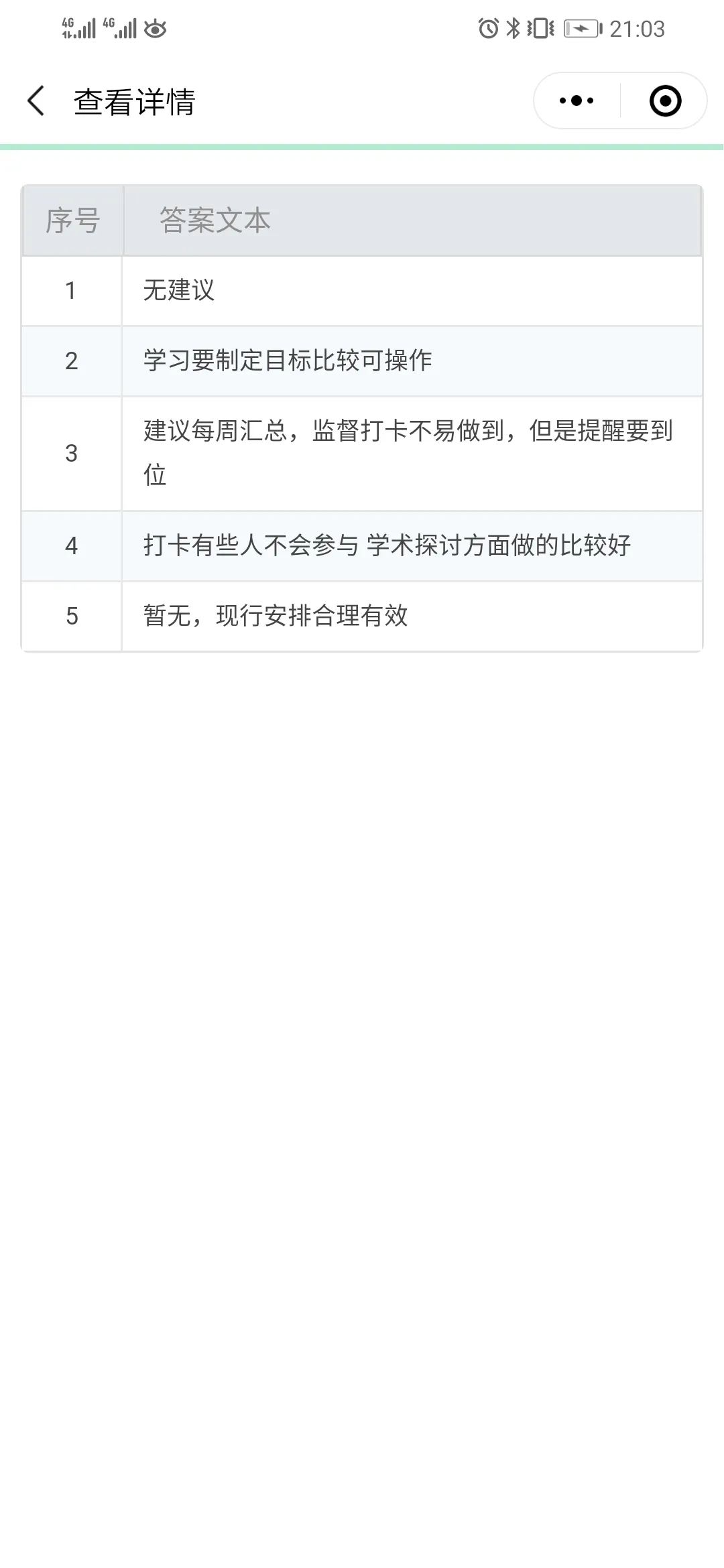 106班学习小组提出“他律形成自律,深化学风建设”的口号,组长除了完成日常对组员的监督提醒工作外,也会不定期发布问卷以调查组员们的学习状态,及时获得反馈,逐步完善小组学习建设。