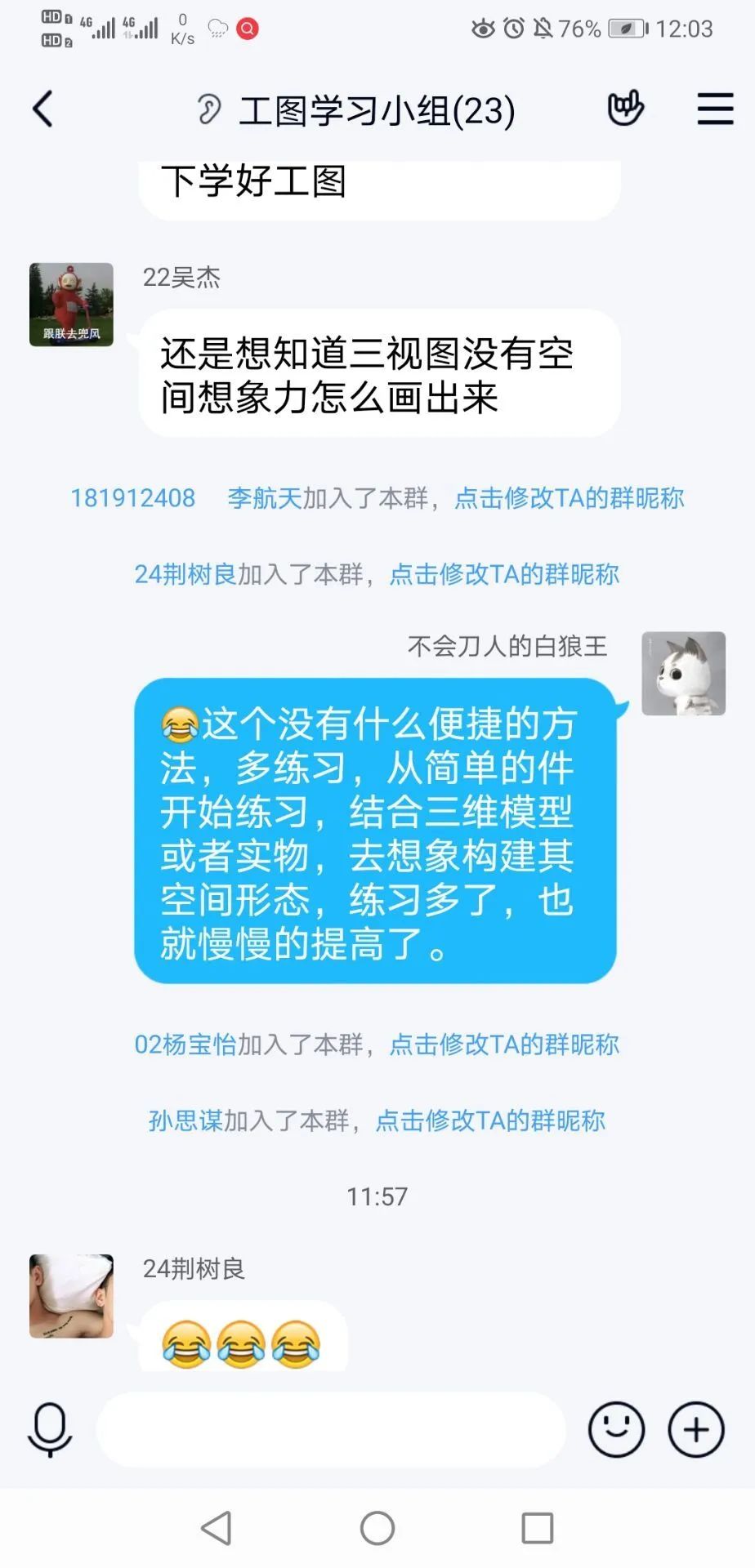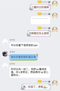 103、114、116、118、120班学习小组每天都在进行着激烈的线上讨论,讨论内容从上学期高数、工图这两块“硬骨头”拓展到这学期大物、C++遇到的新挑战,及时解决了不少细小却重要的知识点,全组上下一心,为提升小组成绩而奋斗。