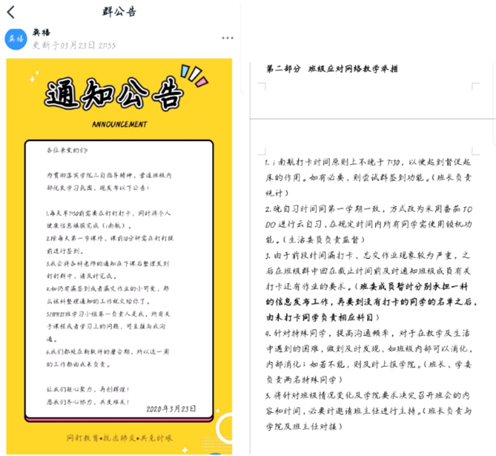 网络学习小组的开展和推进过程中,各班级、各组长可谓“八仙过海,各显神通”,“没有不学习的同学,只有没发问的组长”,起床了吗?听课了吗?作业交了吗?上自习了吗……