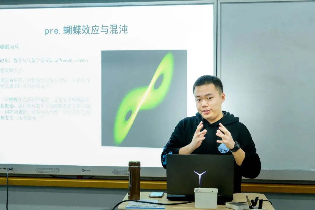 简单的自我介绍后,唐爽通过蝴蝶效应颇具哲学韵味性地解读混沌现象,他说:“任何人都是微不足道的,但即使微小,却意义非凡”。