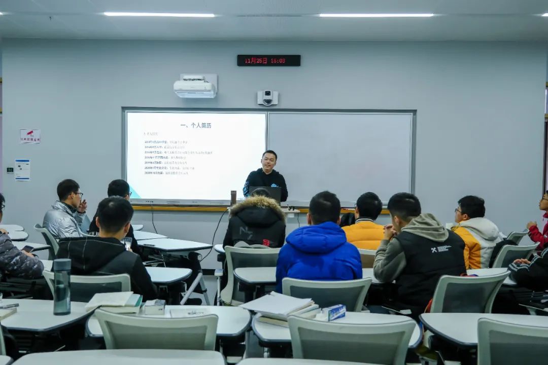 之后,唐爽向同学们分享了自己的处世理念。他用五个关键词概括了他的人生哲学:了解自己、敢于质疑、保持冷静、坚守底线、遵从本心。他提到,首先要能充分地认识自己,不要过于自信自负;其二我们也不能自我否定,要有质疑的勇气,敢于向权威质疑;其三,无论是在学习还是生活中,都要做到心如止水,时刻保持冷静,不要因为一时冲动而犯下大错;另外,要坚守自己的底线,合理规划自己,设置自己的“ddl(deadline)”;最后一点也是最重要的一点——“follow your heart”——不要忘记自己为什么而出发。