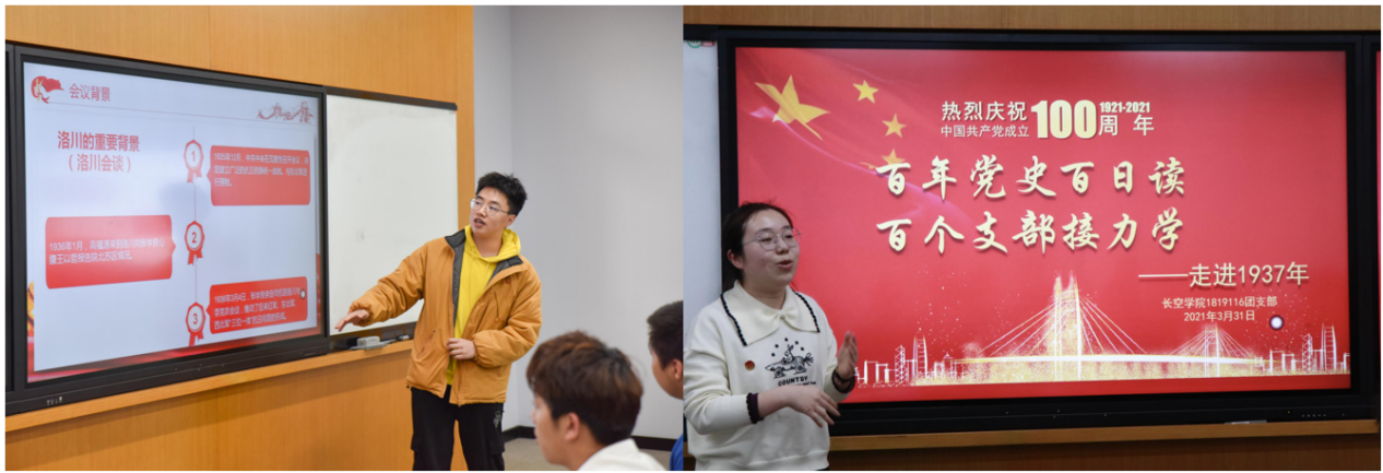 在建党百年之际,贝博艾弗森代言体育官网学习贯彻习近平总书记在党史学习教育动员大会的重要讲话精神,积极落实学校关于开展党史学习教育的各项工作要求,号召全体师生共学党史、共悟思想,以“行学党史”、“精听党课”、“欢庆党生”、“深悟党性”为学习脉络,推进全院党史学习教育工作有序开展。同时为响应校团委“百年党史百日读,百个支部接力学”活动,贝博艾弗森代言体育官网在学生层面以团支部为基本单元,发起了党史学习热潮。3月31日,贝博艾弗森代言体育官网19级116团支部开展了党史学习主题团课,选取了“走进1937年洛川会议”作为党史学习主题。团支部邀请了贝博艾弗森代言体育官网常务副院长蒋彦龙、副院长张林共同参与其中,与学生共同学习了这一次重要的历史会议。