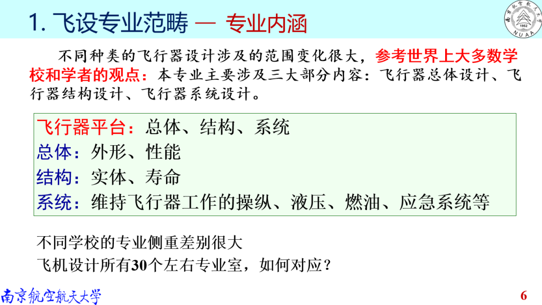 A:从飞设专业的知识体系来说,这三方面都同等重要。从学生学习角度来说,本科阶段三个方面都要学习和掌握,但是到硕博阶段时,由于研究方向更加精、深,更注重个人的科研能力培养,所要求的知识面实际上并没有本科时全面。我们常常说飞行器总设计师是搞平衡的专家,这就要说到飞设专业人才培养的三大能力:创新能力、综合能力、工程能力,其中综合能力就是协调和平衡能力,总设计师便是要从众多想法中综合组织出一个最合适的方案。