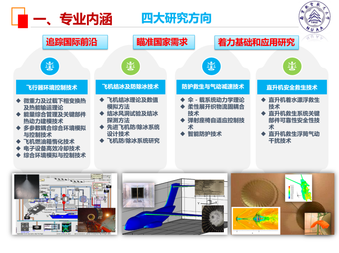 A: 一方面是因为专业所涵盖的内容比较多,如之前提到的流体、传热属于热力学,与发动机的工程热物理相关,再如飞机结冰与飞设的气控特性相关,还有曾属于飞设范畴的燃油系统,现在在飞环做得非常好,属于国内领先,此外还有弹射救生与气控和控制系统相关等等。特别是同学们进行两年大类培养后分流至飞环学习富有交叉性的专业课,知识体系将更加全面,以后选择民用方向也没有任何问题。