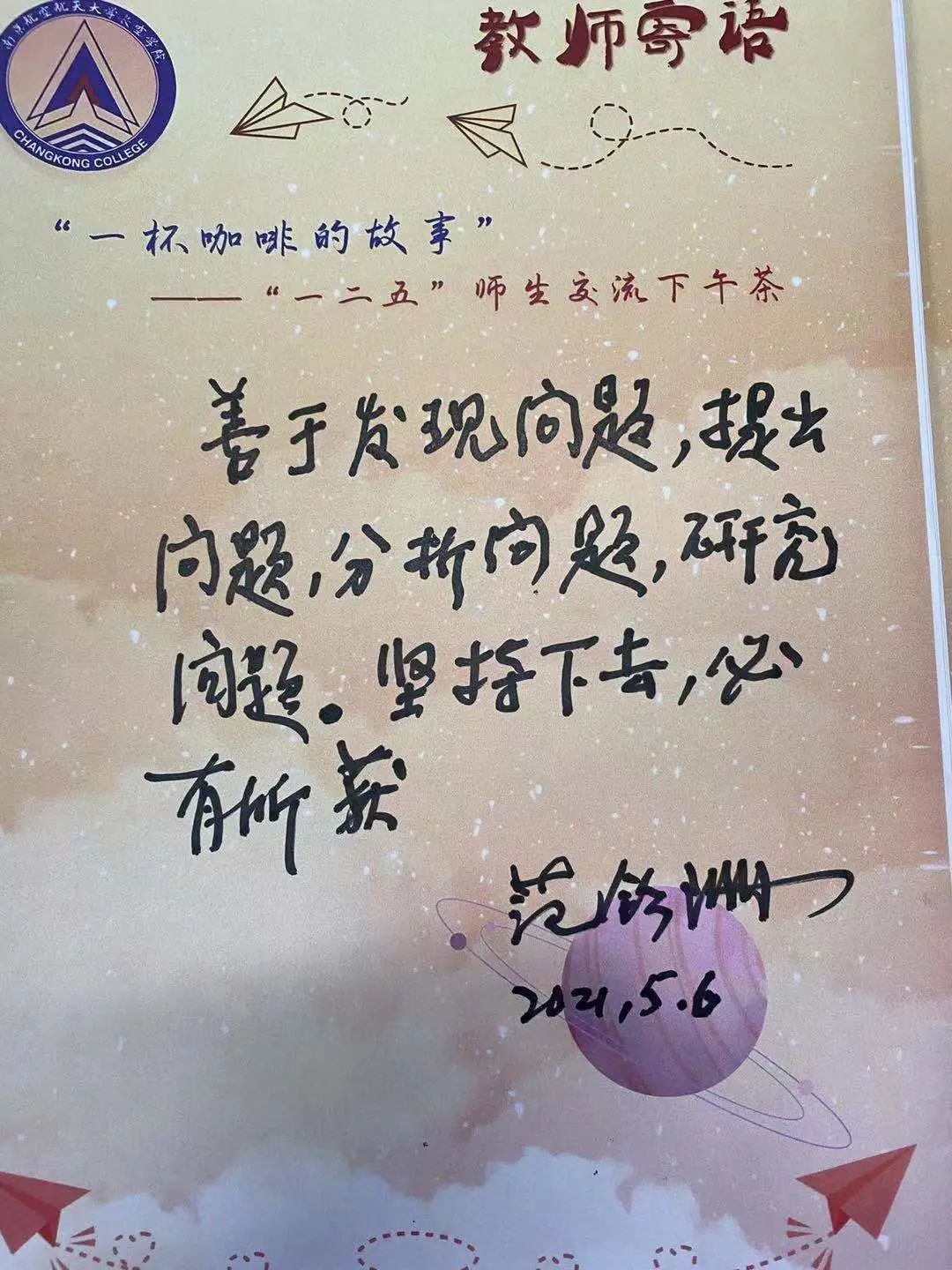 5月6日下午,清华大学博士生导师范钦珊教授做客“一杯咖啡的故事”交流活动,为长空学子带来关于“问题”的主题漫谈。