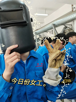 下午焊接,带上黑色面罩,有种社会蒙面老大的错觉,然而穿上蓝色工服带上手套又回归到流水线女工。焊接真的不适合我,胆战心惊拿着机器“挥舞”的一下午就这样结束了。