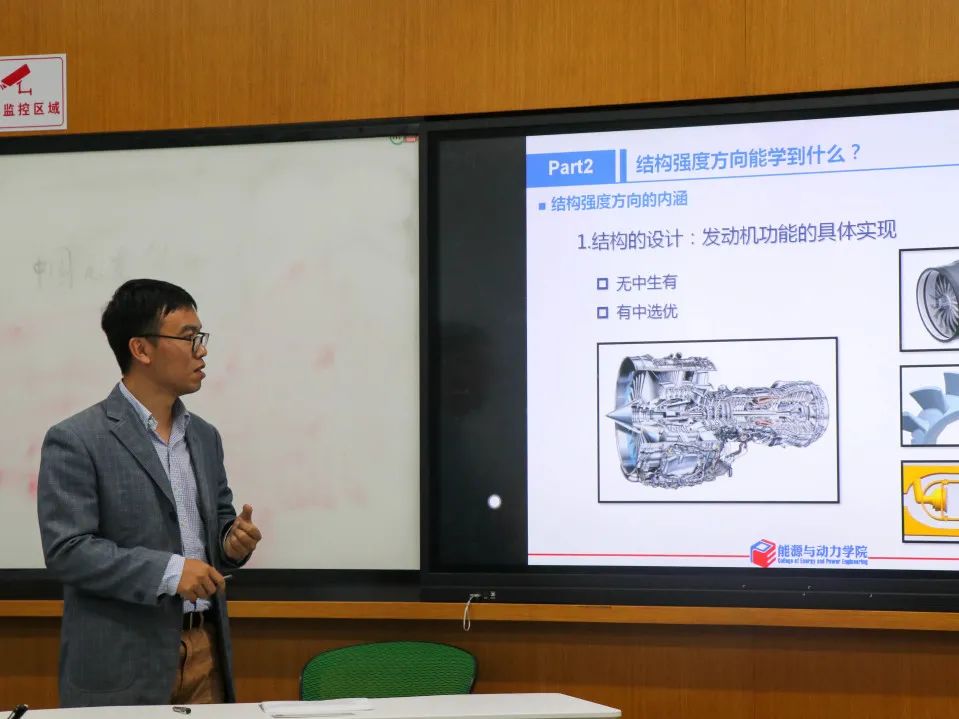 面对专业知识,刘教授侃侃而谈。由活塞式至现代发动机,飞行器动力装置经历了从单一的类车辆发动机到针对不同需求的转变。国内发动机起步虽然较晚,但也正经历着跨越式的发展,未来可期。与飞行器设计不同,前者针对飞机整体的设计,而飞行器动力工程则专精于动力装置的设计,其中由于发动机高温高压高速的工作环境对其材料与结构都提出了严苛的要求,也被誉为“工业皇冠上的明珠”,其前沿技术对其他工业有着指导性的作用。