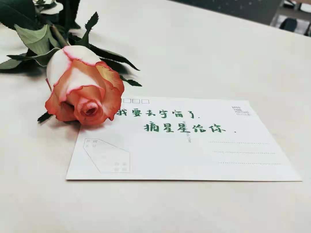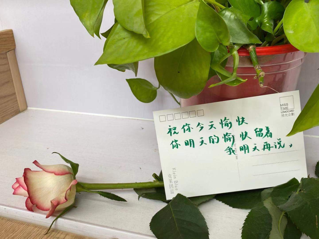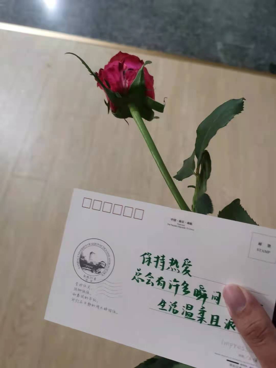 5月21日,晚上选修课上完,我抱着试一试的心态在长空寻花。一进院楼,便习惯性地走向自习室,无意中发现了钢琴上的玫瑰和明信片。自习常有,玫瑰花不常有,但总一些小精彩、小幸运真实地发生在我们的身边。