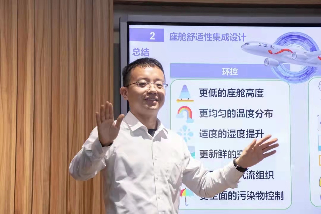 活动伊始,李志茂学长结合工作经历,向同学们简要介绍了我国的三个“大飞机”项目——ARJ21、C919和CR929,并以此为例,引入了环控系统与座舱舒适性集成设计两个设计重点。