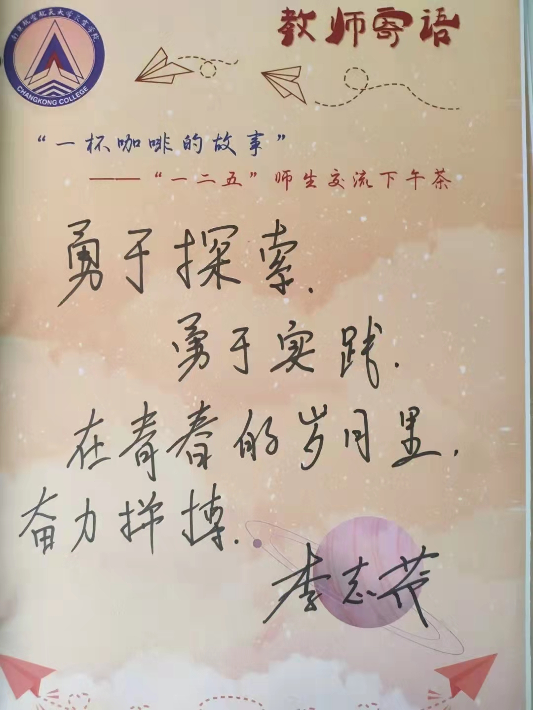 活动的最后,蒋院长也来到交流现场,勉励在场长空学子,“对自己和学校要有信心与决心,飞天的梦想,将从南航启航!未来的精彩,也将从这里开启!”