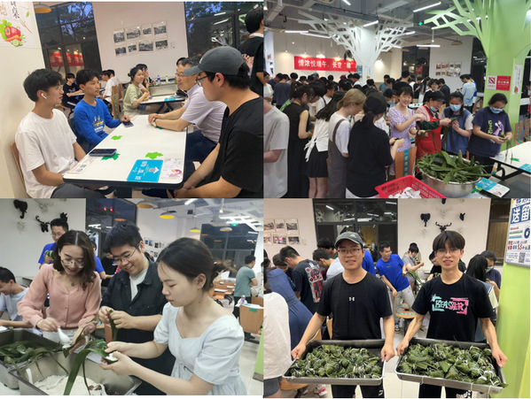 包粽子开始,在食堂师傅的指导下,师生围聚在一起折粽叶、装糯米、放馅料、裹扎绳,一只只“形状各异”的粽子便成型了。在制作粽子的过程中,师生之间还分享了端午节的由来、传统文化习俗等,一同感受传统文化魅力,传递真挚情谊,现场气氛热烈。