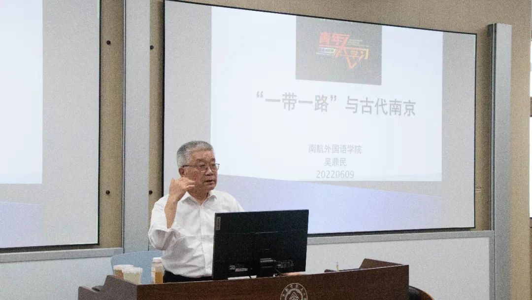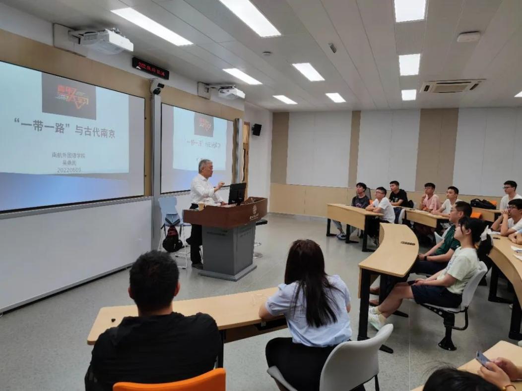 “一带一路”(The Belt and Road)提出于2013年,是“丝绸之路经济带”和“21世纪海上丝绸之路”的简称。本次活动,吴教授通过中国古代的路上和海上丝绸之路,从国内到国外,从中国到世界,介绍了南京深厚的历史文化。