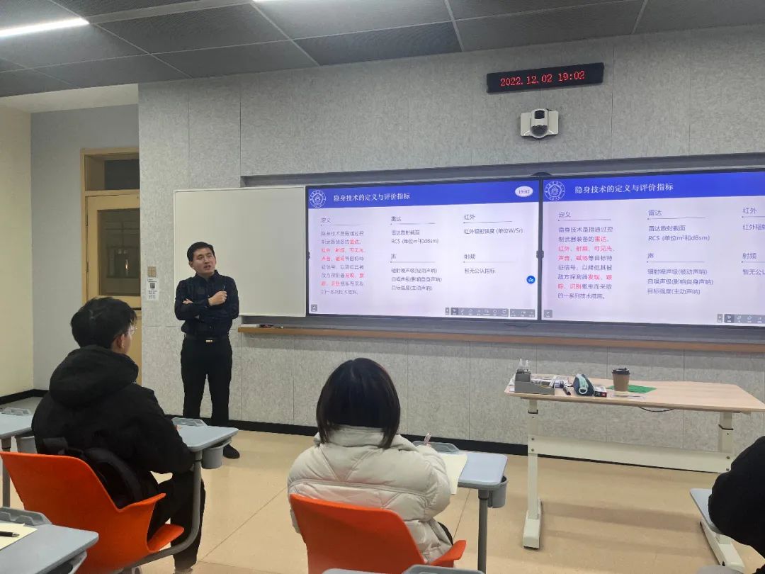 冯老师接下来从春秋战国时期的《老子》,《孙子兵法》,《水浒传》等名著为引讲述了国内隐身技术发展史。新中国的雷达隐身技术由周健雄女士带回中国。张考教授传承和发扬了这项技术,经过多年研究对隐身技术有了基础的理论探索。八十年代,张考教授也将隐身技术传播给了更多研究人员,其中就包括歼20总设计师杨伟。但直到海湾战争中美国展露隐身技术的威力后,我国才真正开始了对隐身技术的大力发展。最后,冯老师给同学们讲述了他的研究感悟:一是失败乃成功之母;二是吃水不忘挖井人;三是保持战略定力,不被外国人牵着鼻子走;四是正视不足补齐短板。冯老师的感悟也让给了同学们以科研道路上的信念启迪。