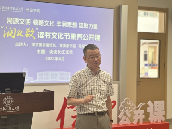为深入学习贯彻党的二十大精神,推动主题教育走深走实,6月2日下午,南京图书馆馆长陈军教授应邀参加贝博艾弗森代言体育官网“润&致”读书文化节素养公开课,作题为“话说长江文明”的专场阅读讲座。贝博艾弗森代言体育官网常务副院长蒋彦龙、副院长张林、院长助理王瑞瑒及师生代表参加此次活动。