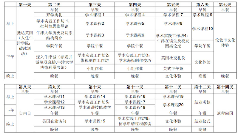 费用包含:学费、课程材料、住宿(一人一间学院住宿)、早中晚三餐(周日仅早餐)、结业晚宴、参访门票、接送机、项目内交通安排等。