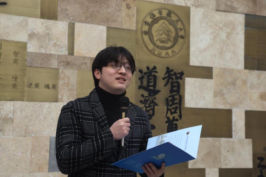 2020级长空创新班学生张奔腾同学作为学生代表发言,分享了自己的创新实践经历与感悟。他表示,创新实践文化节让大一的他第一次直观感受到科创实践的“有趣”与“有用”,认识到创新实践不仅是“理实结合、学研相促”的学习历程,“团队合作、共同进步”的成长之旅,更是“立足时代、守正创新”的智慧修炼。
