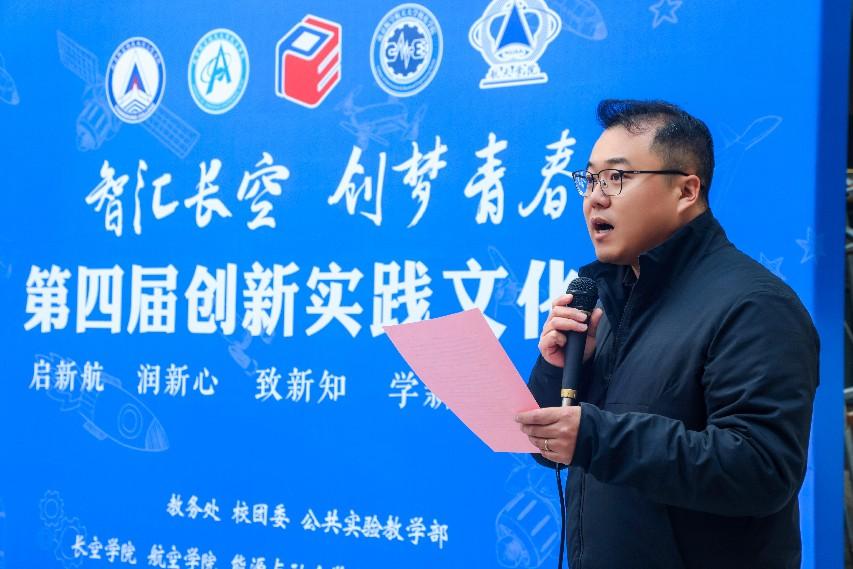副院长彭聪为本届文化节致开幕辞。她表示,创新实践文化节是深化协同育人,培养交叉复合型人才的生动实践。依托于院-院(处)协同育人联盟搭建的高水平创新实践平台,学院构建了以大创、各类竞赛为牵引的进阶式创新实践能力培养体系,营造了人人是参与者、创造者的科创氛围,希望同学们积极参与创新实践活动,期待更多“长空身影”闪耀科创舞台。