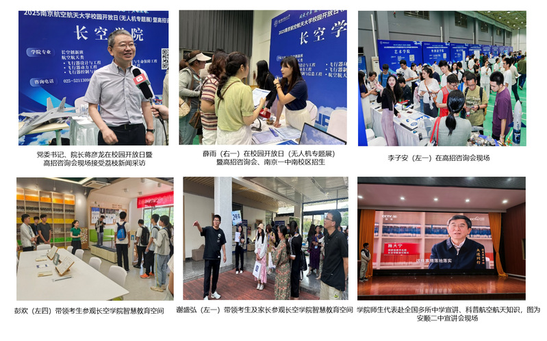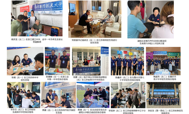招生咨询周,全院教职工参与招生工作。院领导班子成员带头深入各地中学、招生咨询会,解读招生政策、介绍学院优势。奔赴招生一线的各位老师在招生咨询会现场为考生及家长答疑解惑,展现学院的学科特色与育人成果。留守学院的各位老师耐心接听考生咨询电话,用好学院“准书院制”智慧教育空间,全方位展示“一流资源面向学生”的南航,生动讲述“润&致”文化浸润的长空故事。