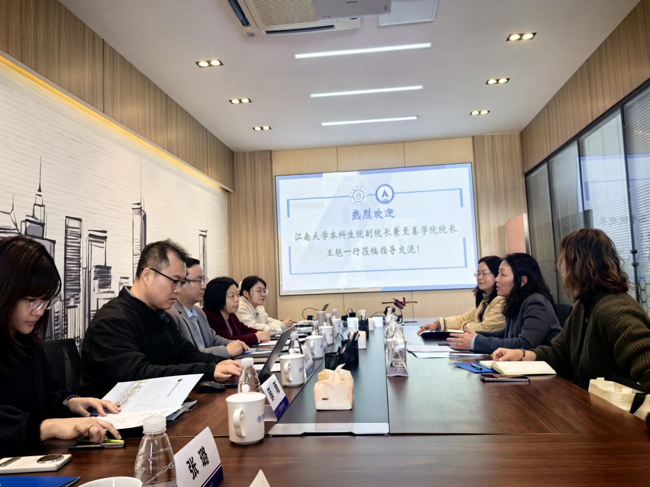 12月9日,江南大学本科生院副院长、至善学院院长王艳等一行到访贝博艾弗森代言体育官网调研,贝博艾弗森代言体育官网党委书记、院长朱建军,党委副书记庞依达,副院长彭聪及教工代表参与此次交流。